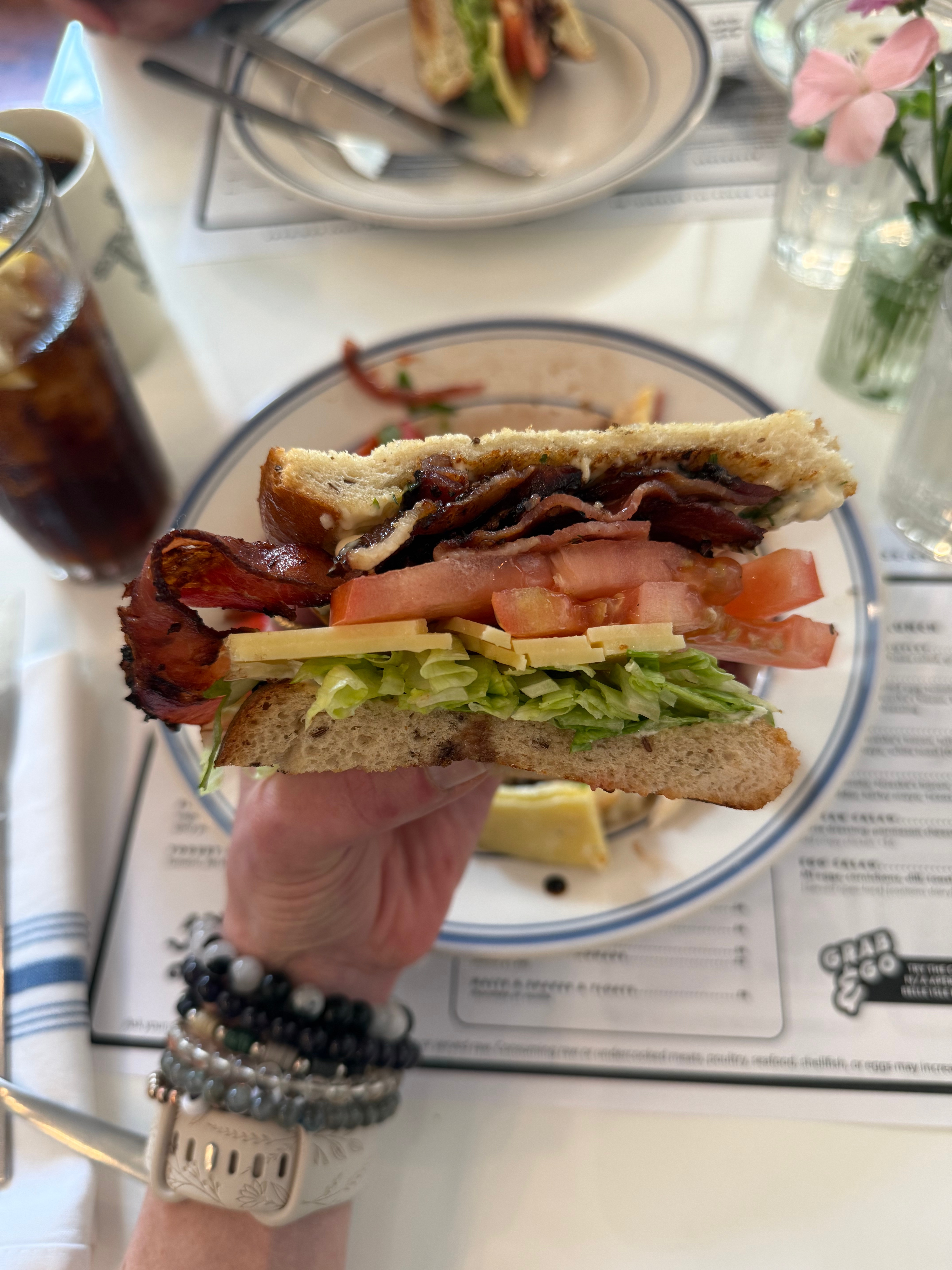 Our food was delicious! We split the biggest BLT I have ever seen, a salad special, and some house-made sausage. They had sold out of a lot of items, which tracked because they were bustling with customers. They have grab & go items as well, which we want to try for the errand-running days because I love me some pasta salad.