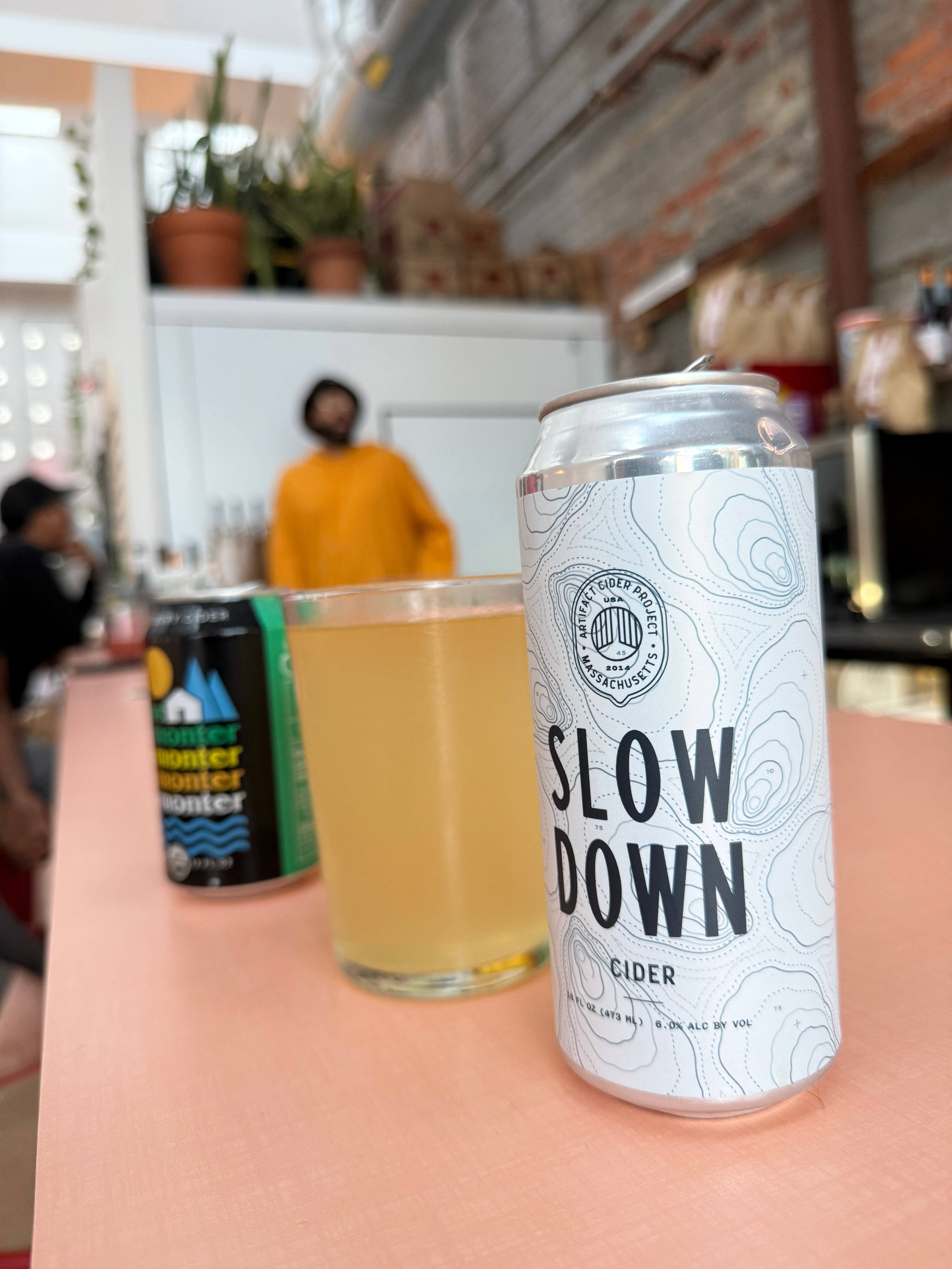 They have a rotating tap, as well as a fridge stocked with beers, ciders, and wine. Lots of NA options, and delicious/dangerous shots of Four Roses.