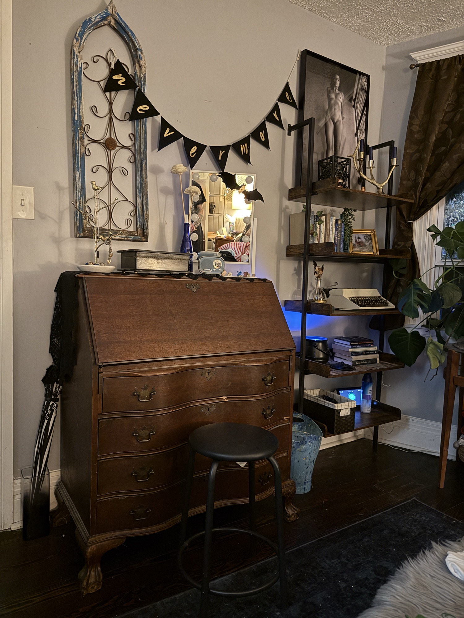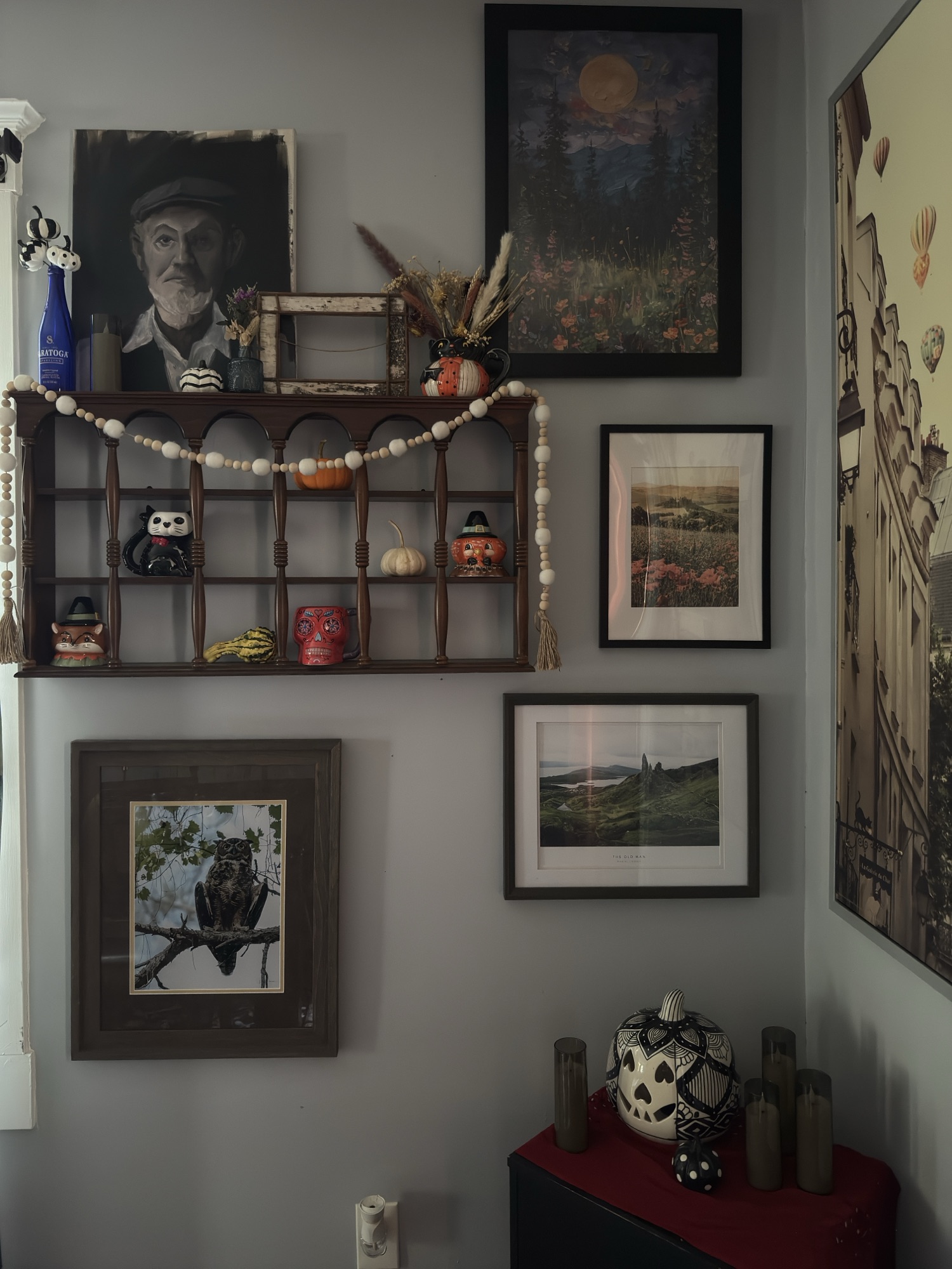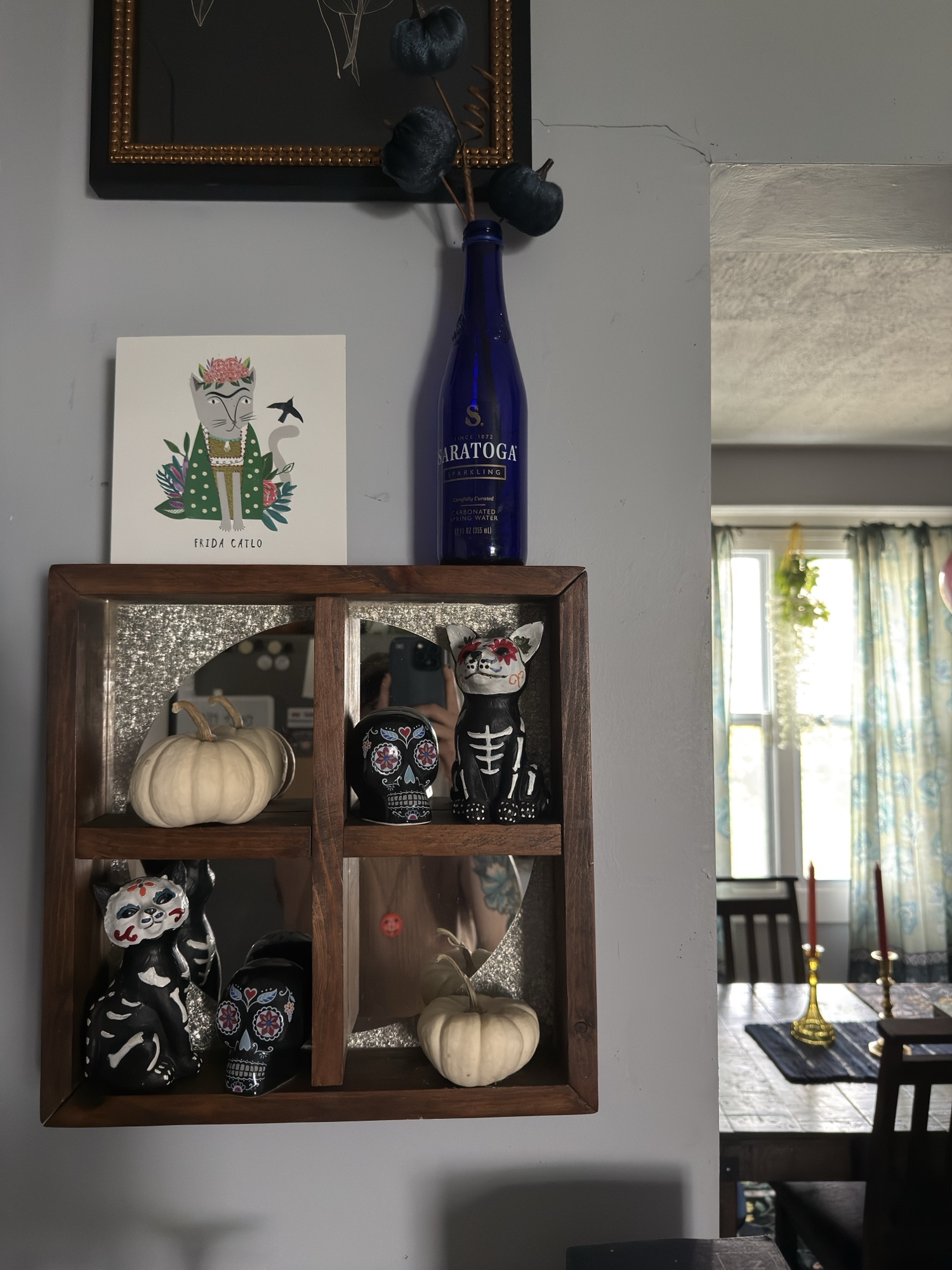 Over the years, my aesthetic has changed little-by-little when it comes to decor in general. My old apartment in Ferndale was very hedge-witch/vintage mixed with horror-regardless of the time of year, and after that it was more of a mix of vintage Halloween decor with whatever came along. When I moved into Dreamtroit, I had so very little that it was almost nothing, a hollow.