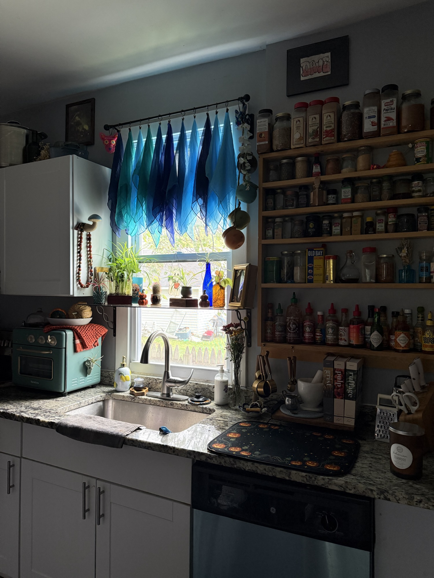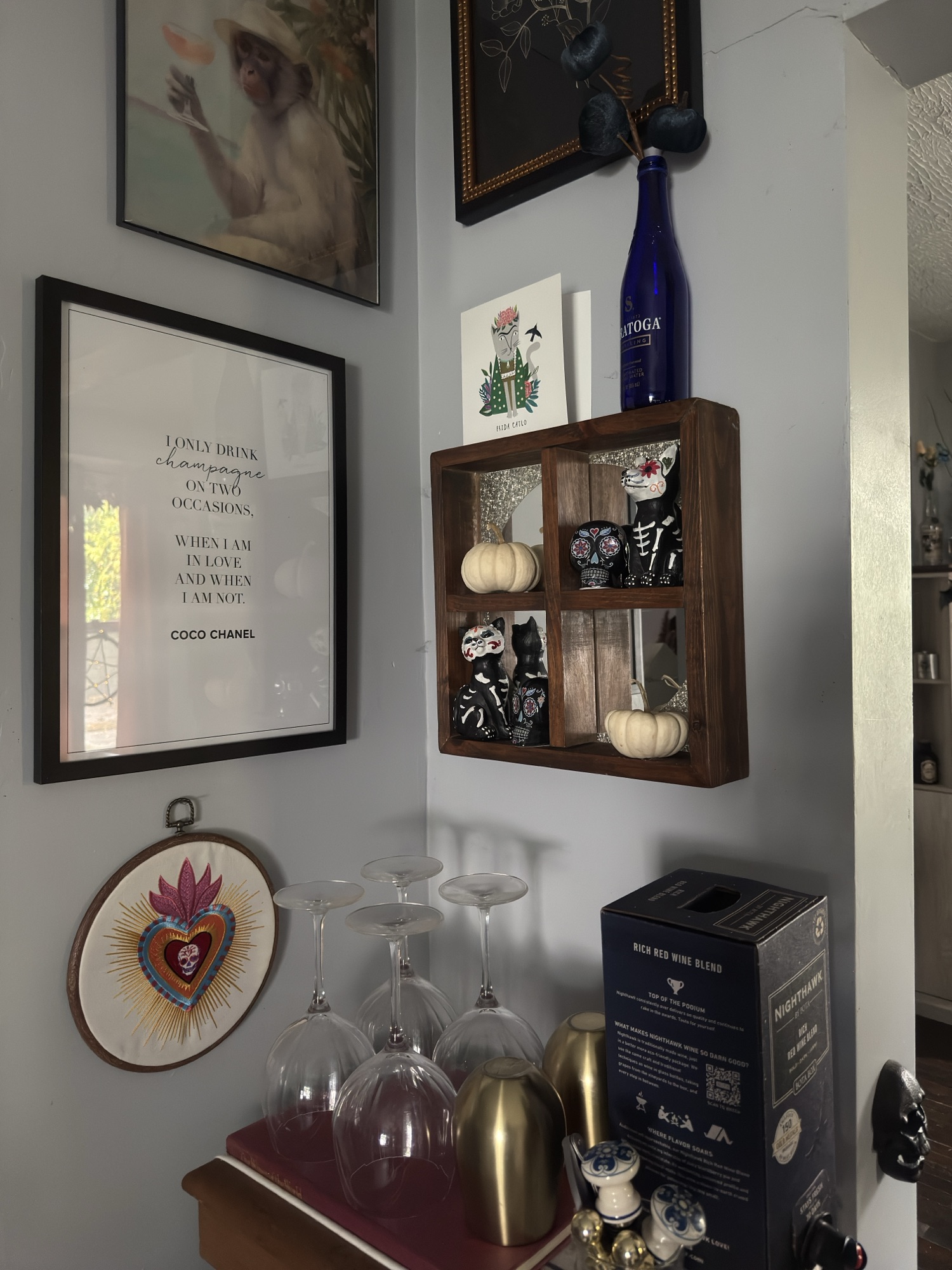 Most of the DΓa de los Muertos decor was gifted to me over the years from my mom, and they reside in the kitchen-one of the most colorful rooms of the house. Obviously here I only focused on the Halloween decor, but, I will have to do a follow-up post showing off all of the art.