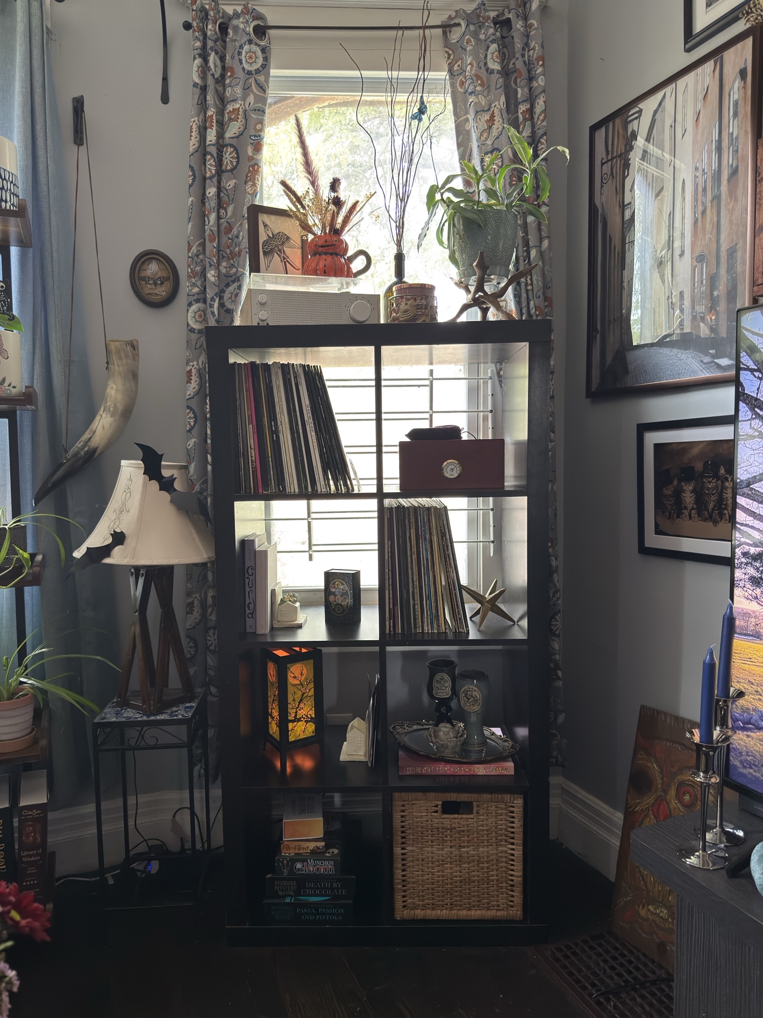 My second favorite nook of the house is in the living room: The Record Corner. That Ikea bookshelf has survived six moves, a beast! Dave placed it there and I wasn’t excited about it until we turned it into the *coolest* record/music station.