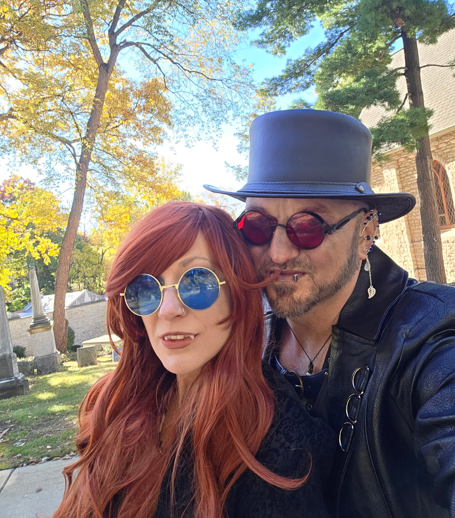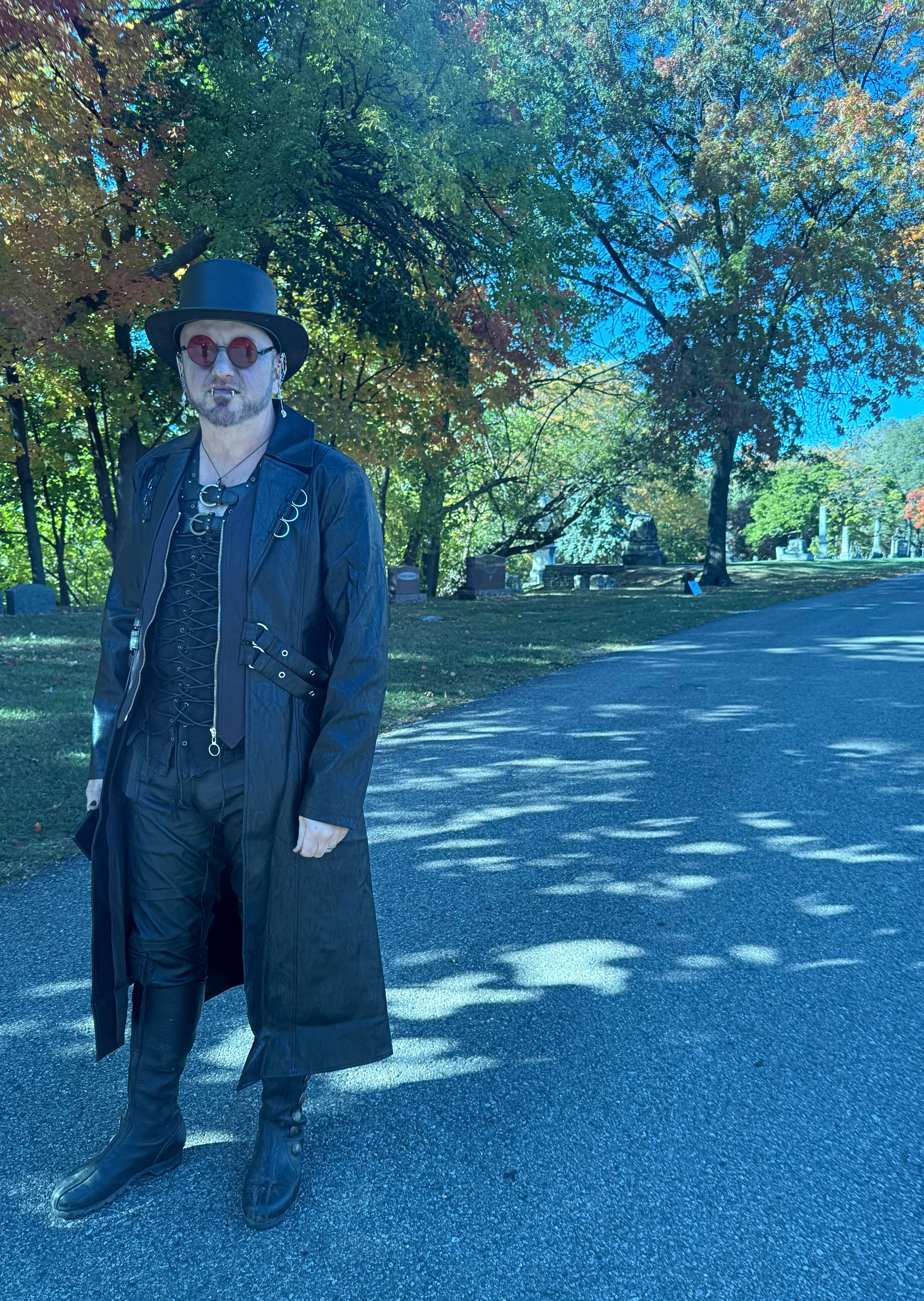 Speaking of, it could have been the beautiful weather, the fun of taking photos, the confusion on the two different tourist groups faces at the sight of a couple of idiots dressed as vampires, but, Elmwood did not feel haunted. I have only ever felt unwelcome at one cemetery, The Ganong Cemetery in Westland, MI. All of the other cemeteries that I have visited have actually felt very calming, and welcoming. Or, my ghost spidey-sense is broken.