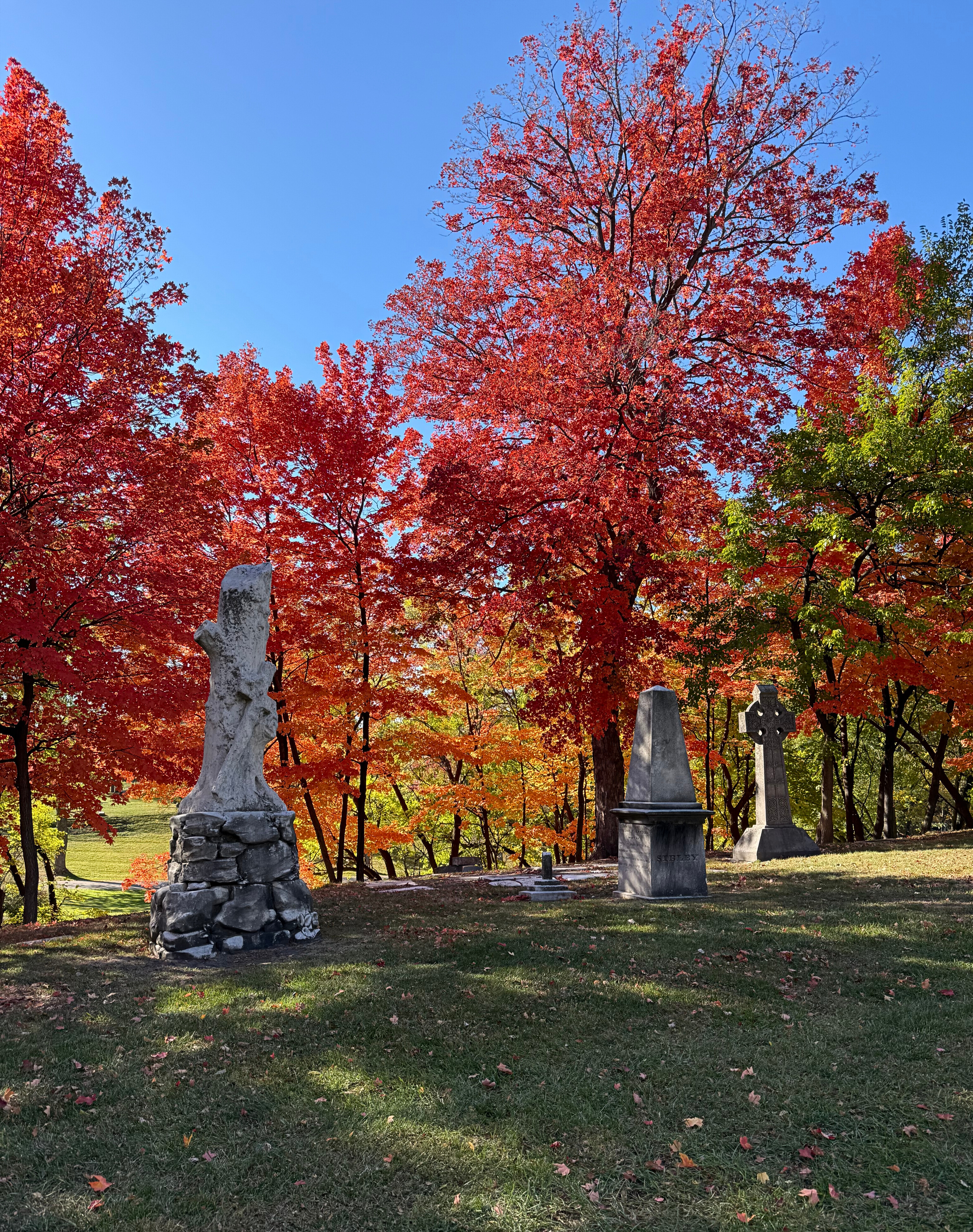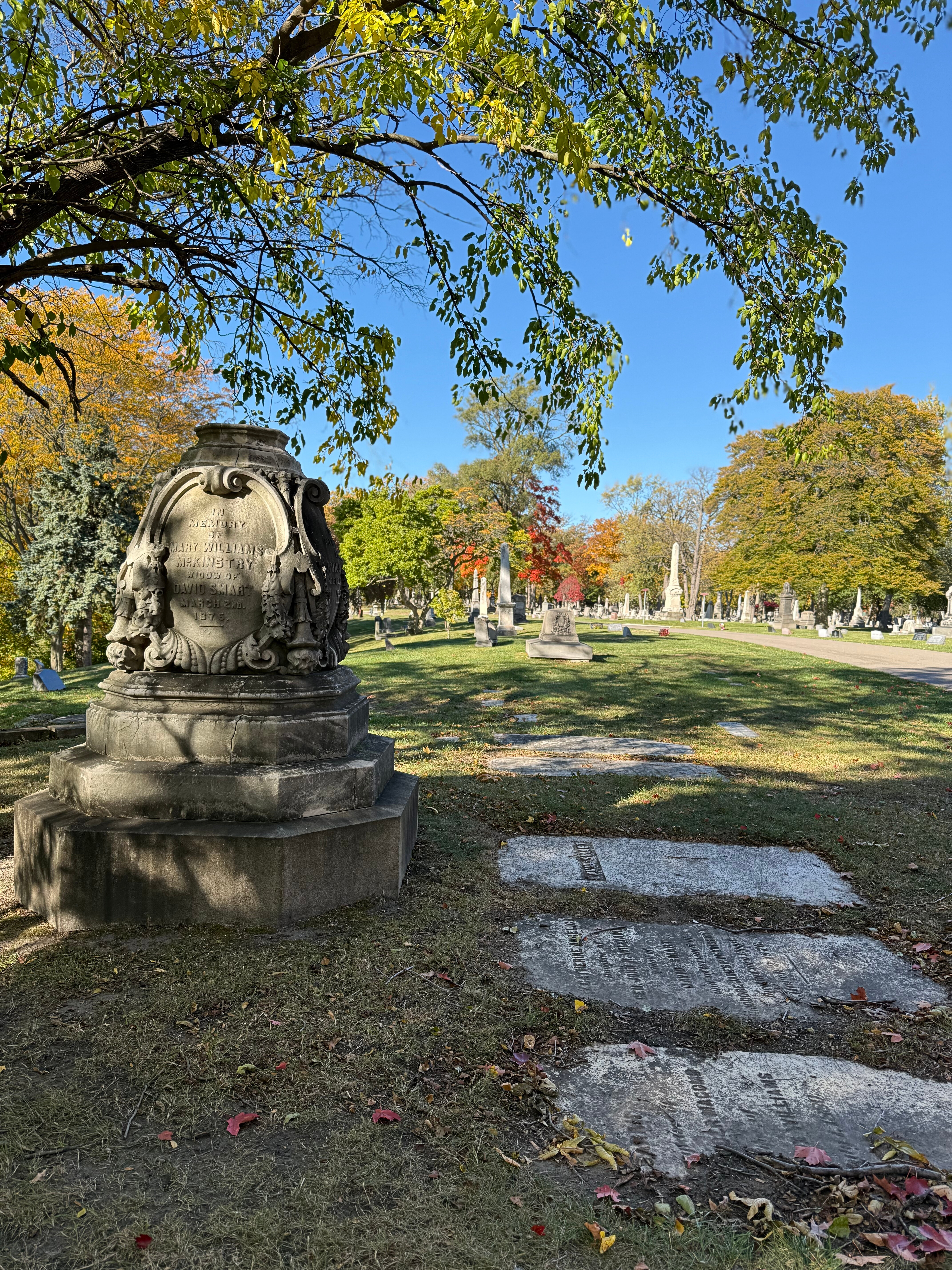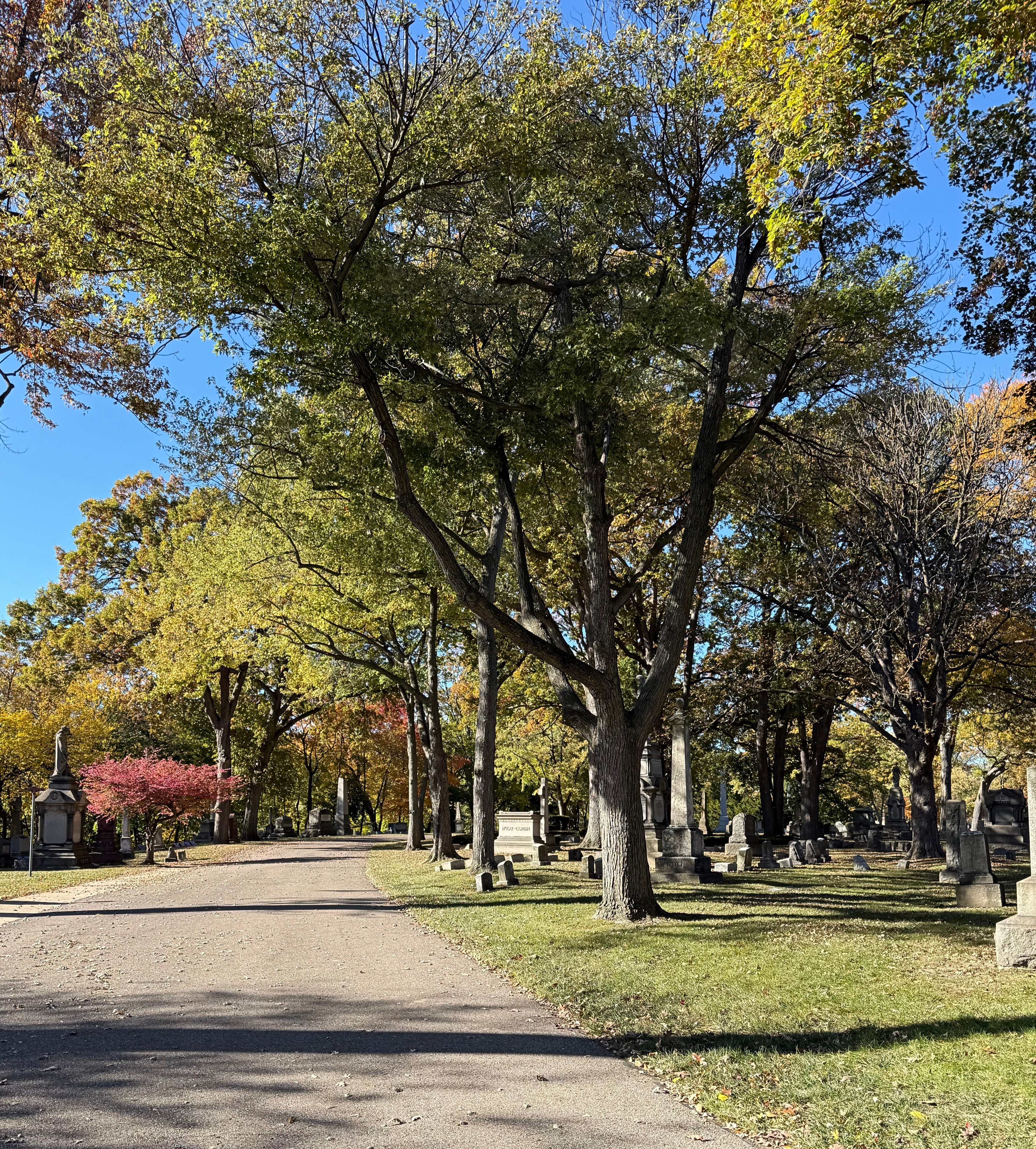 Elmwood is approximately eighty-six(ish) acres, a certified arboretum, and recognized as a significant site for the National Underground Railroad Network to Freedom, by the National Parks Service of the United States Department of the Interior. There are several famous and well-regarded humans buried in Elmwood’s grounds, rumored ghosts, and ghostly markers with interesting history, but most importantly, IMO, it is gorgeous as hell.