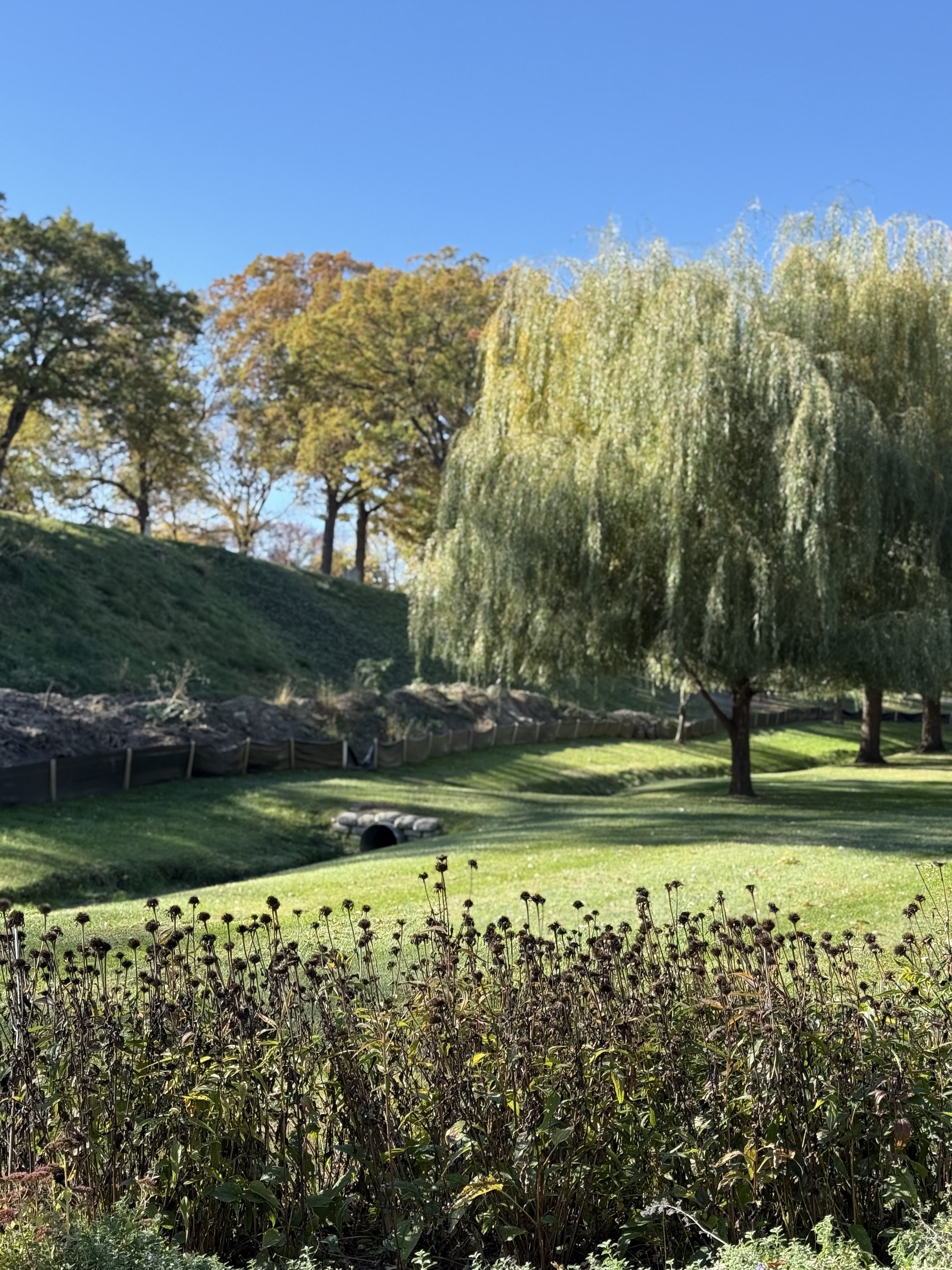 The design and layout of the park was created to preserve and enhance the natural land; groves, hills, beautiful trees, vegetation, and, a historic creek: The Bloody Run.